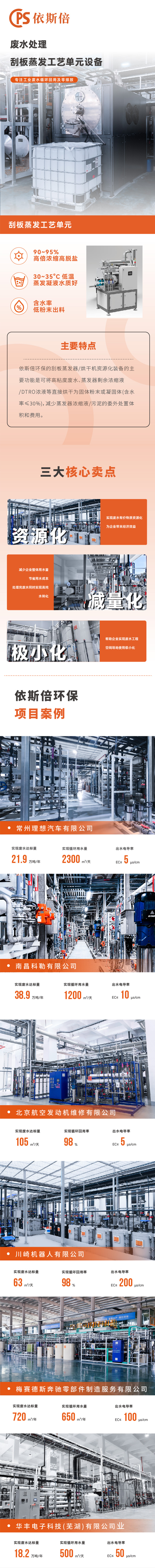 90-95%高倍浓缩高脱盐、30-35℃低温蒸发凝液水质好、含水率低粉末出料