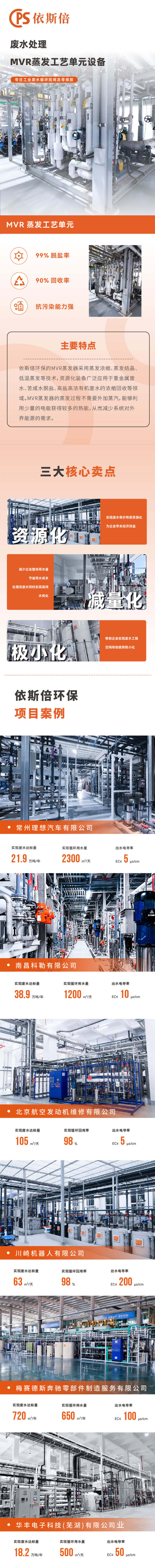 j9九游会环保的MVR蒸发器采用蒸发浓缩、蒸发结晶、低温蒸发等技术,资源化装备广泛应用于重金属废水、苦咸水脱盐、高盐高浓有机废水的浓缩回收等领域。MVR蒸发器的蒸发过程不需要外加蒸汽,能够利用少量的电能获得较多的热能,从而减少系统对外界能源的需求。